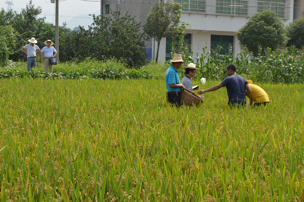 | 烈日炎炎,酷暑当头。7月11日,忙碌了三个月的早稻机插同步精量施肥对比试验到了收获测产的日子,试验项目组既兴奋又紧张。石门县农业局测产专家受市农机推广站项目组和石门县农机局之邀,进行第三方现场测产。 为了得到更准确、更真实的数据,测产专家经过讨论决定采用对角线取样法手工收割脱粒。大家不畏骄阳,分工明确,收割、脱粒、称重、记录,一派热闹景象。 根据农业局测产专家出具的测产报告,减肥施肥的试验田,未出现明显减产;施用减氮30%专用肥的试验田产量比常规施肥方式高10%。通过试验结果,可以初步得到,早稻通过机插同步一次性精量施肥可以在不影响水稻产量的情况下,达到减少化肥施用,能够稳产高产,保护环境,解决农业生产过程中盲目施肥、过量施肥的问题,减轻土壤源污染,增强农业产出能力,为农户增收。 测产结束后,项目组负责人就马上要进行的晚稻机插精量施肥对比试验做出了部署,希望大家总结早稻机插精量施肥对比试验的经验和教训,再接再厉,继续做好晚稻机插精量施肥对比试验的各项工作。有了这次早稻试验的经历,大家都信心十足。